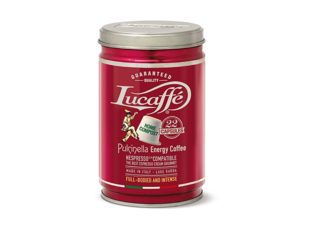 Popis: Lucaffé Pulcinella je prírodný energetický nápoj s takmer dvojnásobným obsahom kofeínu v porovnaní s bežnými kávami. Táto zmes kombinuje špeciálne druhy kávovníka arabiky a robusty, čím ponúka výraznú taliansku chuť a jedinečné zloženie. Na rozdiel od iných káv, kde sa kofeín extrahuje, tu bol pridaný, aby zabezpečil intenzívny štart do každého dňa. Kapsule sú vyrobené z bio rozložiteľných materiálov získaných z cukrovej trstiny, čo ich robí ekologicky šetrnými. Sú balené v elegantnej oceľovej plechovke, ktorá je kompletne recyklovateľná a udrží arómu kávy po dlhý čas, na rozdiel od papierových obalov, ktoré kávu nedokážu dostatočne ochrániť.